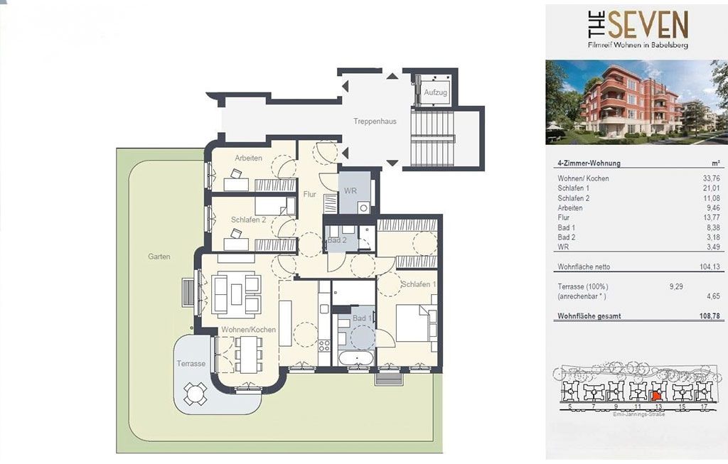 Das gesamte Ensemble besticht durch seinen hochwertigen Charakter und die besondere Lage: Ruhig, grün und dennoch hervorragend angebunden – mit kurzen Wegen in die Innenstadt, zur Universität oder an die Havel. Die einzelnen Gebäude sind jeweils einer berühmten Persönlichkeit aus der Filmgeschichte gewidmet – ein charmantes Detail, das die Einzigartigkeit dieser Wohnanlage unterstreicht.