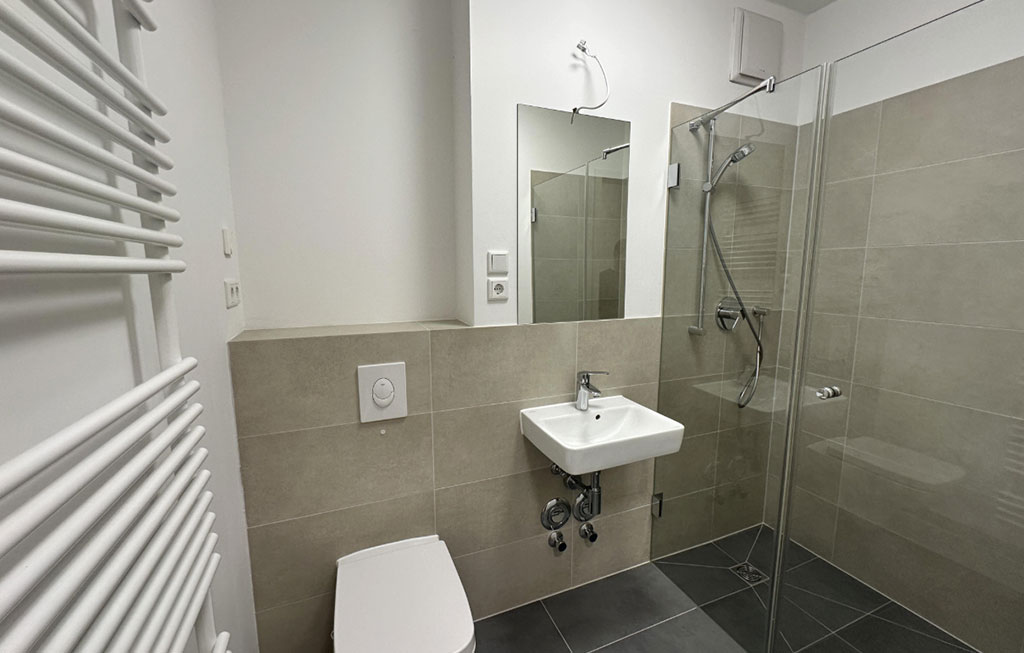 – Separates Gäste-Duschbad – stilvoll und funktional